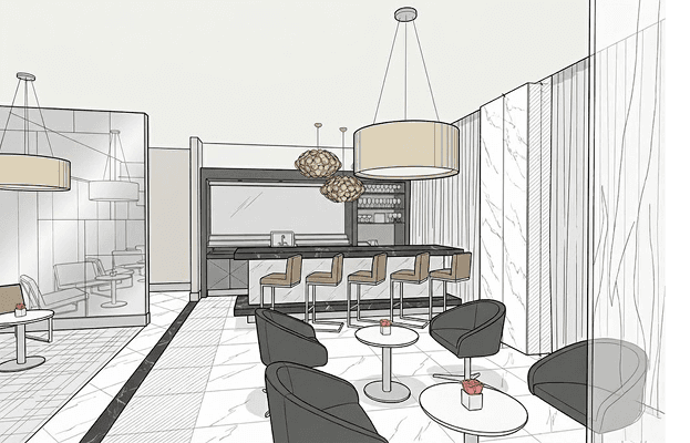 Our team delivered advanced MEP systems, custom heated and refrigerated buffet stations integrated into millwork, and specialty lighting—all while working above active retail tenants and maintaining seamless operations. Completed in just 8 months, this project showcases our ability to execute complex, high-end aviation interiors with zero disruption to existing services in a complex environment.