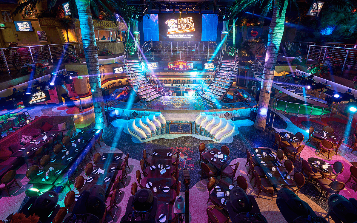 A two-level, 55,000 SF Latin-themed entertainment destination on International Drive, with live shows, dining, and nearly two football fields’ worth of bar frontage.